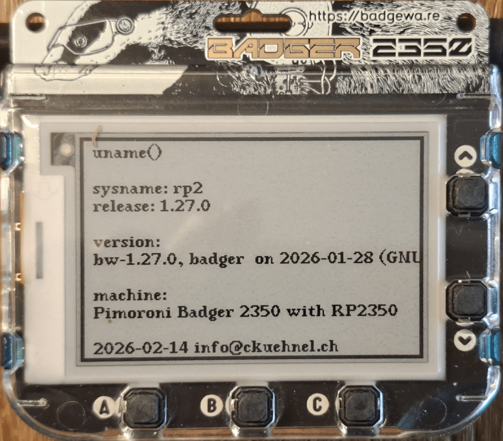 Die Firmware ist neu (https://github.com/pimoroni/badger2350) und die Dokumentation noch in Arbeit. Das gilt es zu berücksichtigen.
