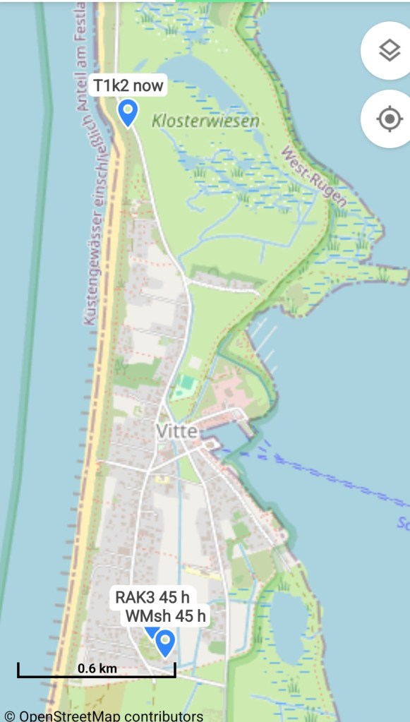 Zwischen Rostock und Stralsund scheint weitgehend Funkstille zu herrschen. Erst in Stralsund werden ein paar Nodes erwartet. Auf der Insel Hiddensee wird dann meine temporär installierte Node S3GW zu sehen sein.