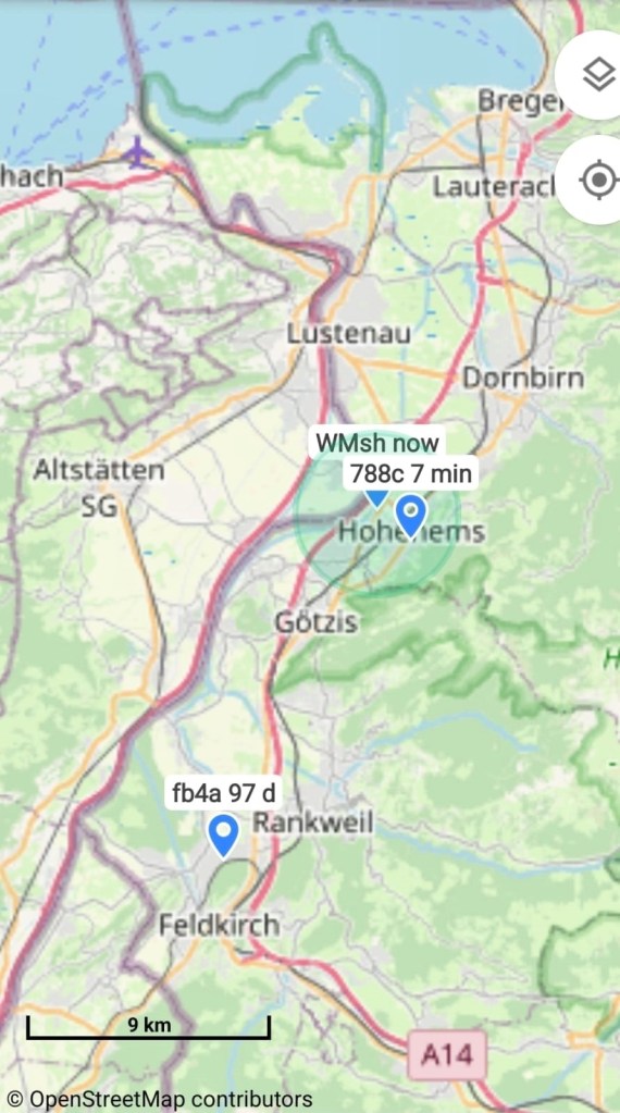 Wie erwartet konnte ich in Sargans und im Rheintal einige wenige Nodes empfangen.