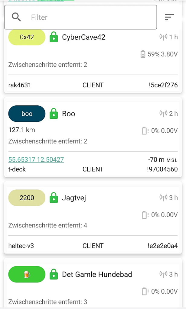 Hab deine Nodes Rak3 S3GW und WMsh auf Hiddensee gesehen, bin Mobil in Schaprode gewesen mit den Nodes Ntzm und Rsty. Generell ist in MV ausserhalb großer Städte wie Rostock oder Stralsund ziemlich tote Hose, was Meshtastic angeht. Auch ich hatte in diesem Bereich zu 95% nur Dänen oder Polen auf dem Radar.