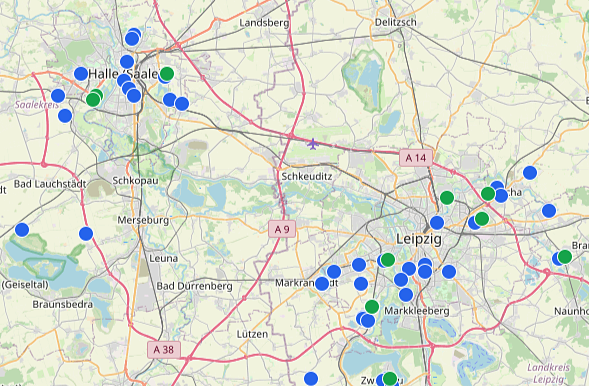 Weiter geht es über die A9 nach Norden, wo im Bereich Halle Leipzig zahlreiche Nodes zu erwarten sind.