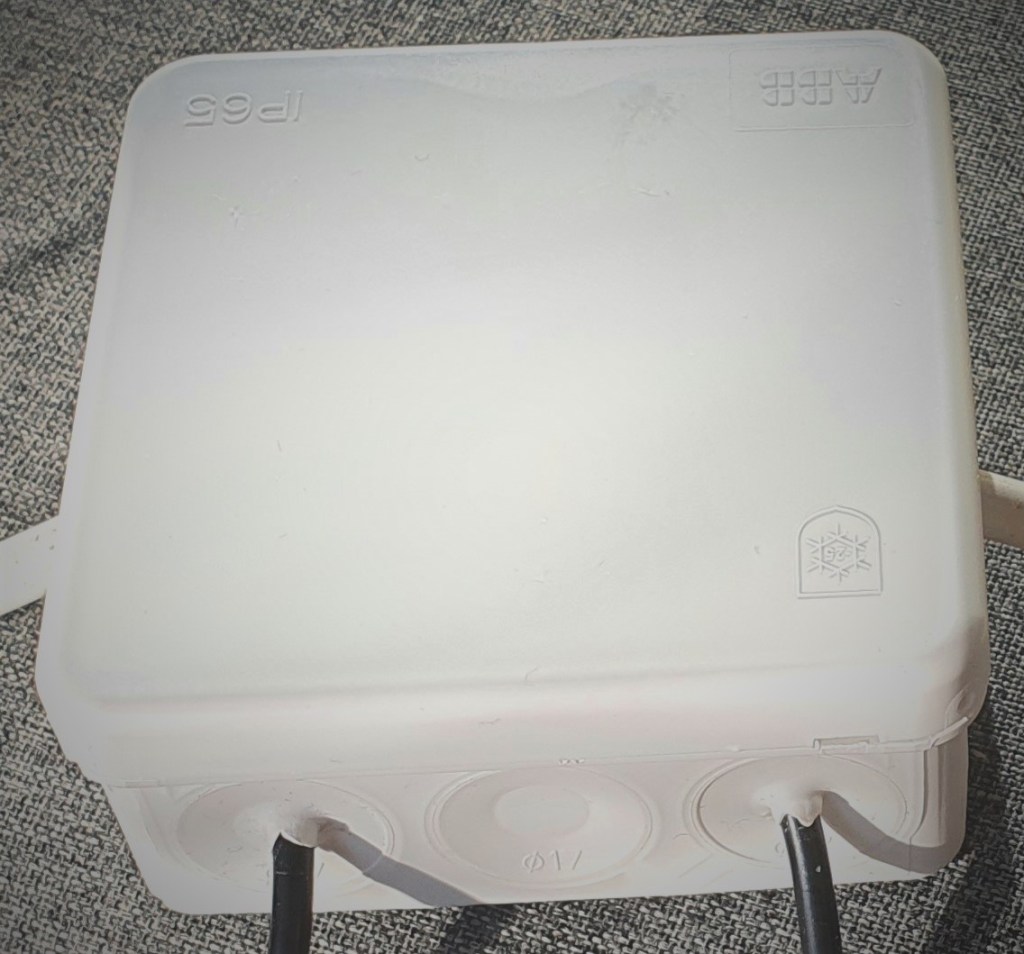 Ich habe die beiden Shelly-Komponenten, DS18B20-Anschlüsse sowie Netzleitungszugang und -abgang in eine IP65-taugliche Installationsbox montiert.