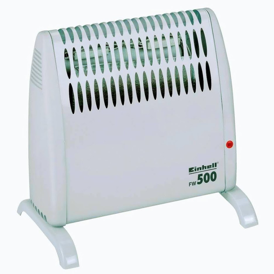 Ich verwende hier einen Einhell FW 500 mit stufenlosem Thermostatregler, der zudem Feuchtraum geeignet mit Spritzwasserschutz und einem Überhitzungsschutz sowie Betriebsanzeige ausgerüstet ist.